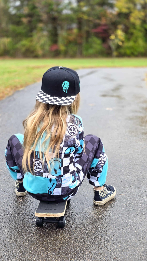 Our Drip Smiley Snapbacks are available in Toddler, Youth, and Adult sizes.