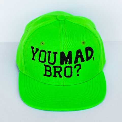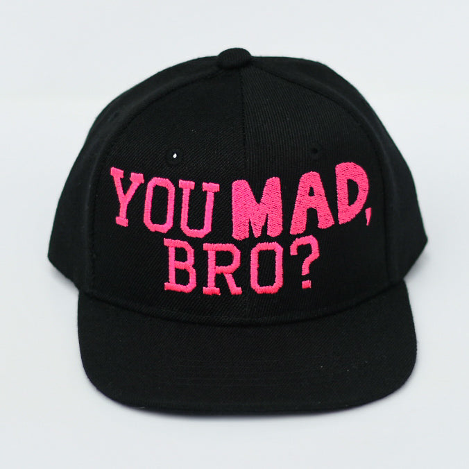Our YOU MAD, BRO? Snapbacks are available in Toddler, Youth, and Adult sizes.