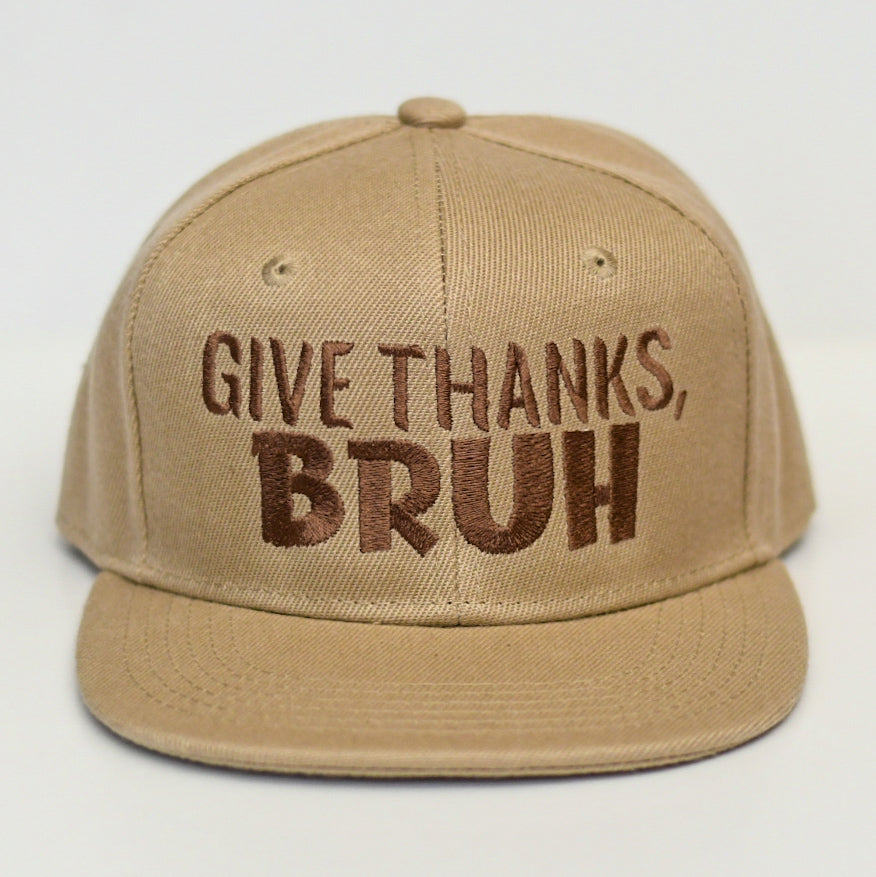 Our GIVE THANKS, BRUH Snapbacks are available in Toddler, Youth, and Adult sizes.